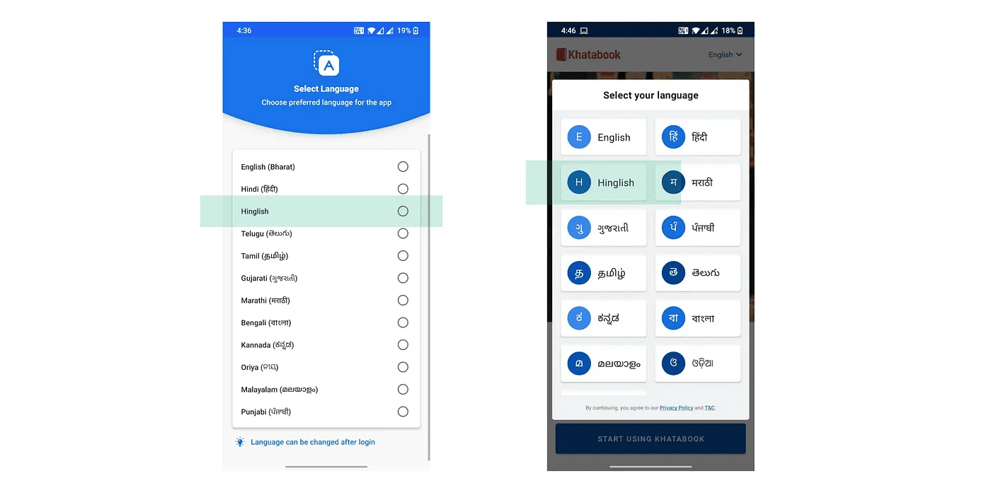 2. Vernacular app with Hinglish language