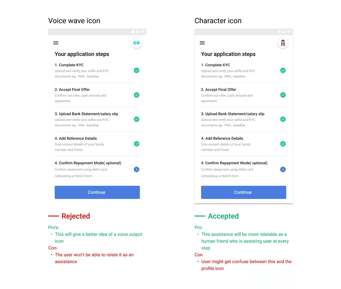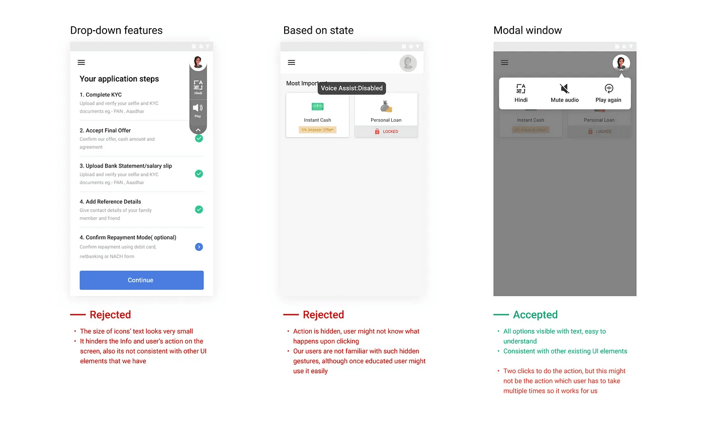 It may sound simple to us but for these users who are new to technology, it becomes quite difficult to use the apps with traditional UI guidelines, and thus it's hard for them to complete the application process which made us realize the need of enhancing accessibility for these users and include all such users into the digital world