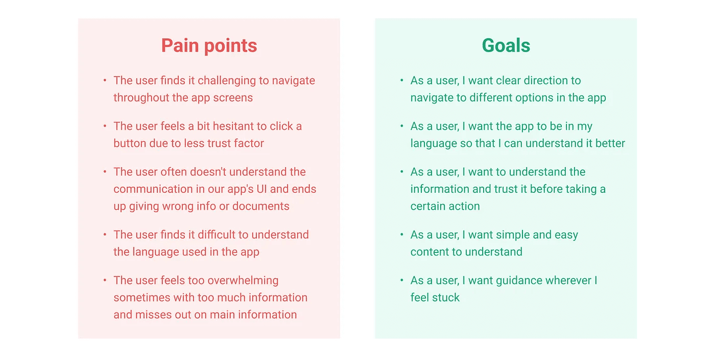 To understand the problem better, I talked to these users while doing user testing for different flows in our app and also observed how they used our app. This helped me define certain pain points that users have with respect to using the app-